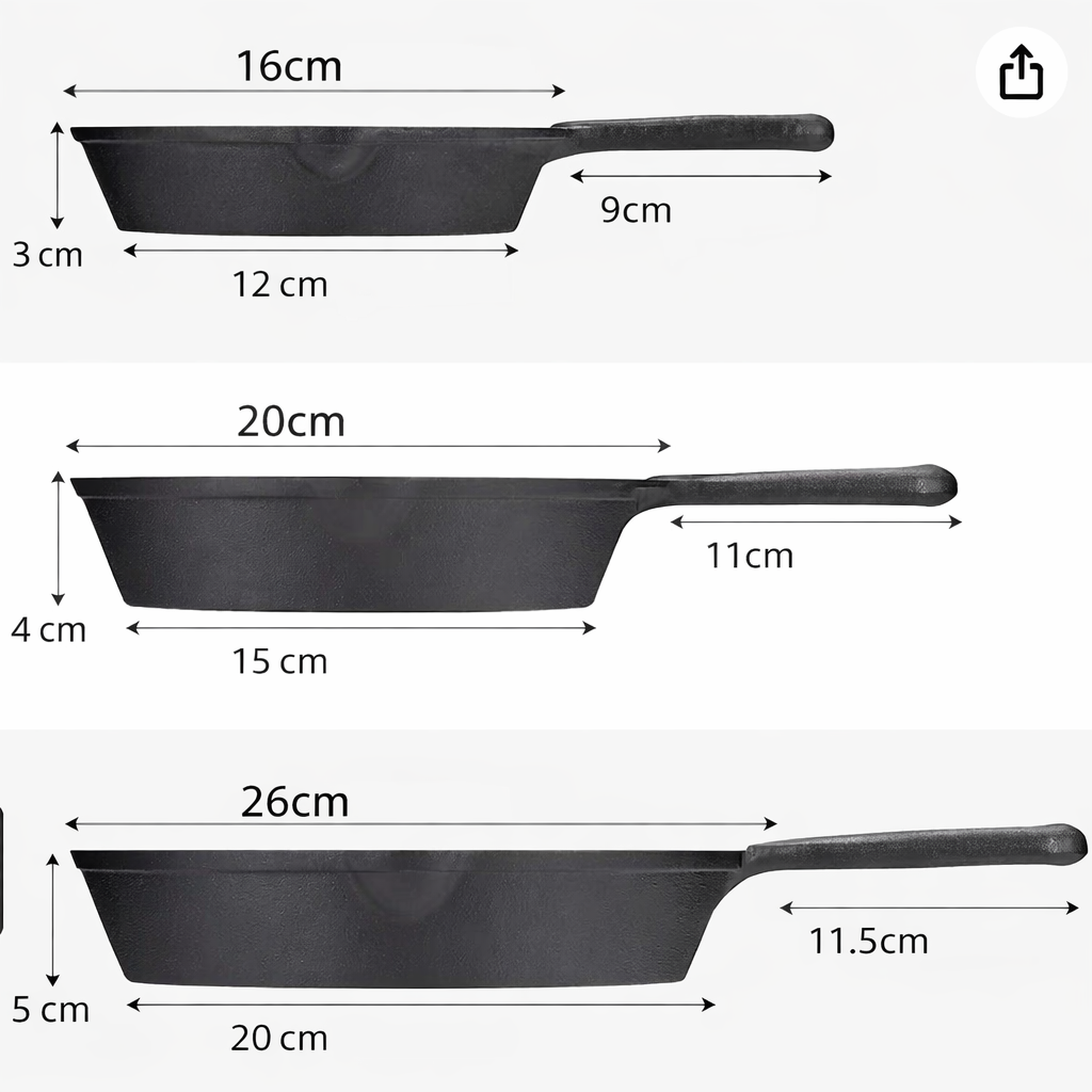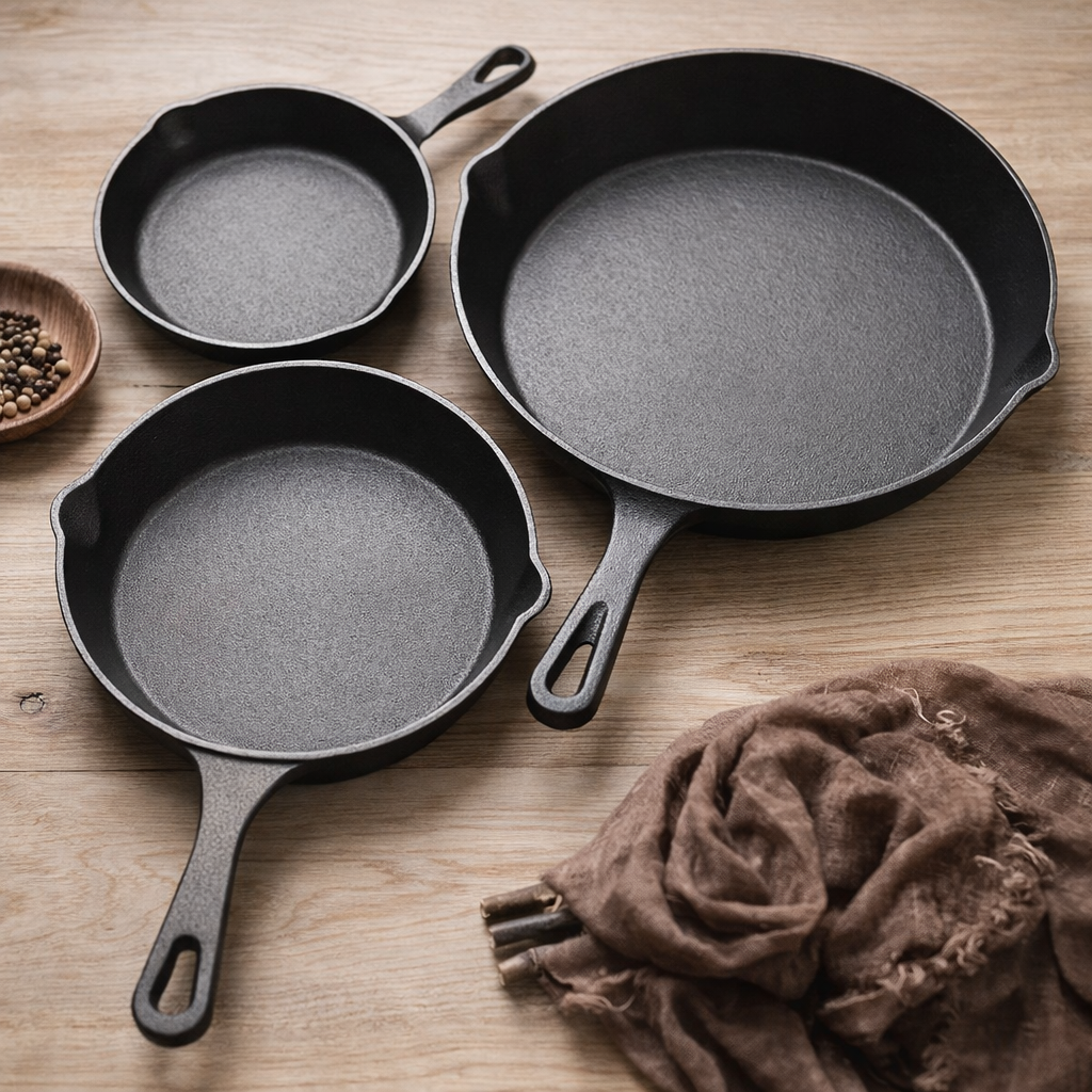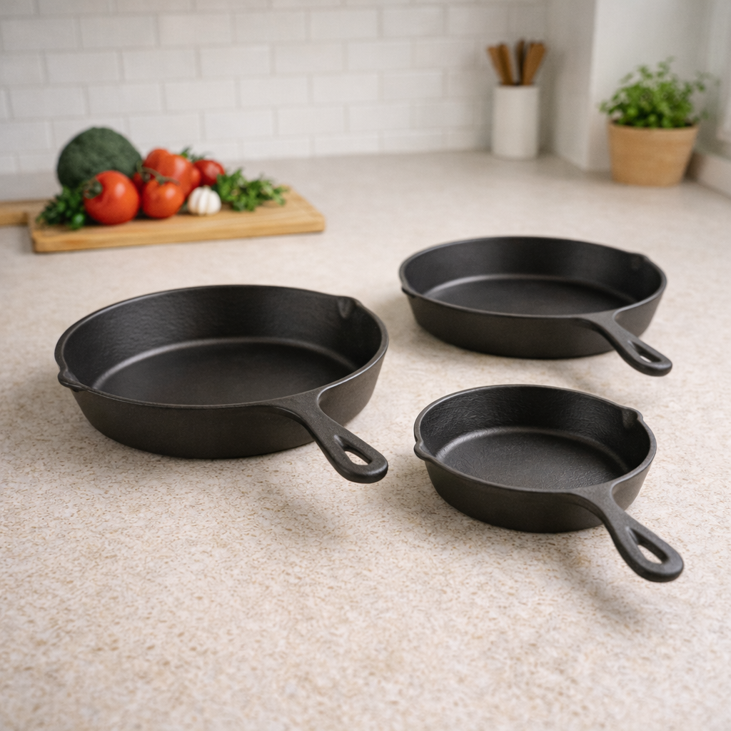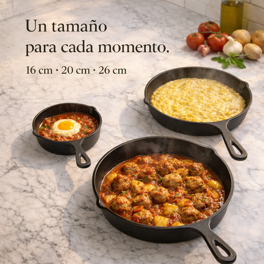 Set X3 Sartenes Hierro + Gratis 3 Fundas de Silicona